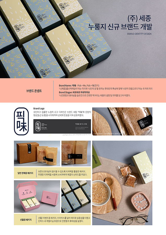 장려_(주)세종 누룽지 신규브랜드 개발 맹효리, 이광준, 최영헌, 박상진 수상작 보기