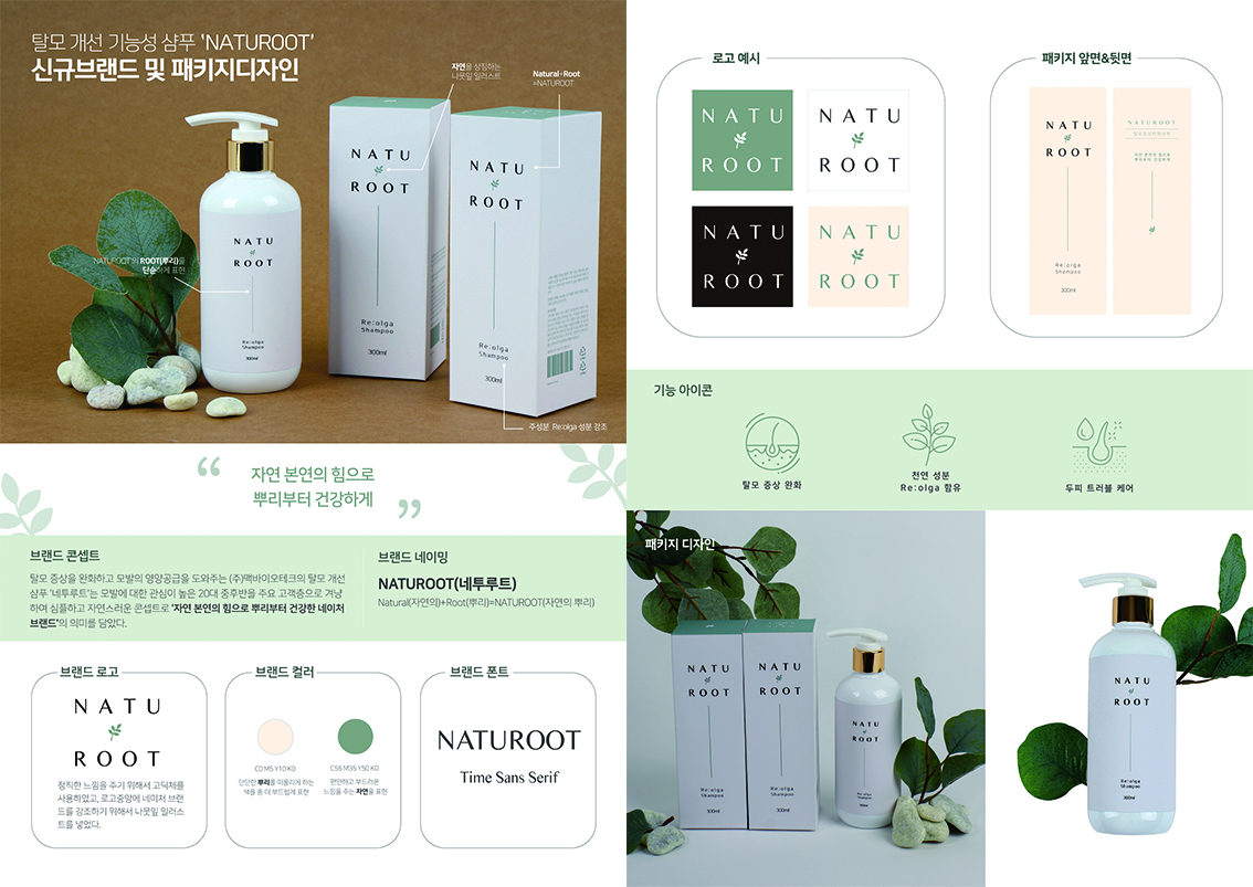 특선_탈모 개선 기능성 샴푸 'NATUROOT'브랜드 디자인 신수빈.황예진.박혜원 수상작 보기